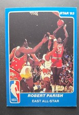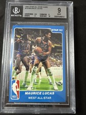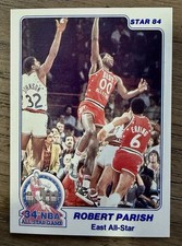 It is one of the more popular subsets issued by Star in 1984, yet still reasonably affordable, as it holds early playing day cards for Dominique Wilkins and James Worthy. The cards are yellow and feature the typical Star design. As we can see on the Wilkins card below, the cards feature the player’s stat line, and in Wilkins’s case, a notation states that he had been named to the Sporting News All-America teams. Outside of the Wilkins and Worthy cards, the other player cards can generally be viewed as commons and are sold for around $5-$10.