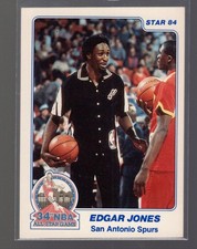 Here’s a full poly bag for the 1984 Star Denver Police All-Star set. The Thomas on the front is the first card in the set, and the checklist for the set is on the back of the card. Note that the set includes 34 cards, which is nine more than the 25-card 1984 Star All-Star set—remember it includes nine cards from the 1984 Star Slam Dunk set.