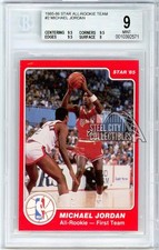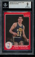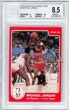 Note that the Jordan, Barkley, Stockton, and Olajuwon cards from the set are considered to be first-year subset issues for each player. Per Basketball Gold, the set was released in the same year as the 84-85 set and printed on the same sheet as the 1985 Star Last 11 ROY set.