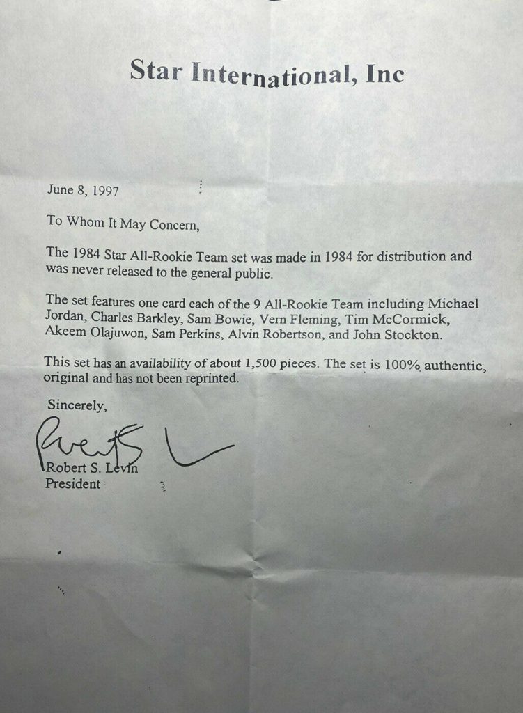 All Shop at Home sets were issued with a letter from Robert Levin, founder of Star. All letters were written very similarly, all claiming that these sets were unearthed from storage when, in fact, Levin had unlawfully printed them in 1997. Here’s a letter for the Shop At Home All-Rookies set.