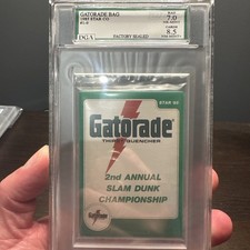 The 1985 Star Basketball Gatorade Slam Dunk set was handed out to fans at the All-Star Banquet weekend in Indianapolis. The cards had a slightly lower production run than the base Star sets, and thus, the Michael Jordan card from the set has become wildly popular. Of course, with the increase in price came the counterfeits.